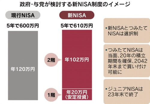 新NISA制度について、低リスク商品に20万円枠が追加。