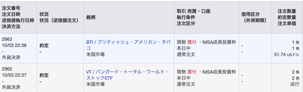 BTIは最近少し下がっていて配当利回りが6%に近いですね。再投資の時に30ドルくらいだと余ったものを投入するのにちょうど良かったのですが50ドルだとだいぶ端数が出てしまいます。なんか単価の低い楽しそうな株でも探そうかな。