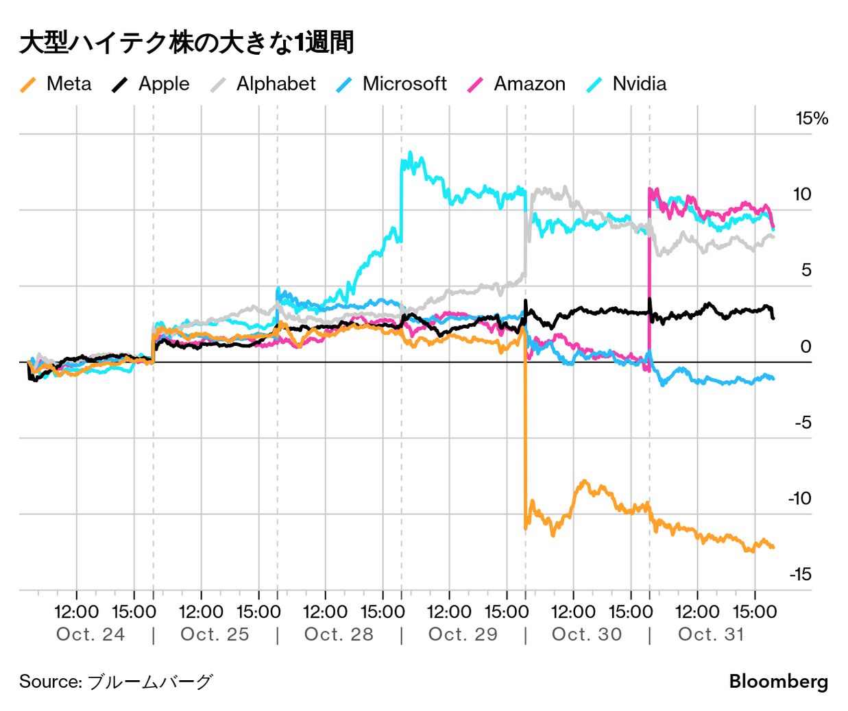 一方で、短期的な成果が見えない企業には投資家の厳しい視線が向けられており、AI支出に対する曇りのない楽観ムードにも変化が出てきた。メタ・プラットフォームズではAI関連の投資拡大に対する懸念から、株価が3年ぶりの大幅安となった。マイクロソフトもクラウド収益が期待に届かず、2日間での株価下落は4% を超えた。