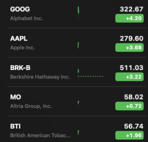 アルファベットを含むマイ個別株の上昇が止まりません。なぜかタバコ株まで爆上げしています。