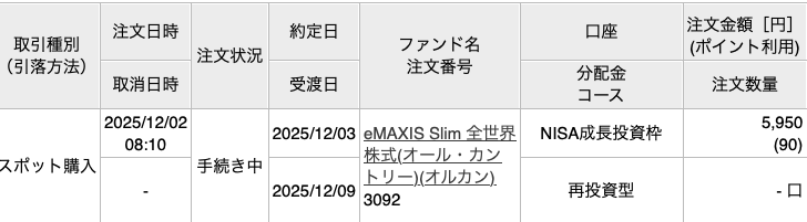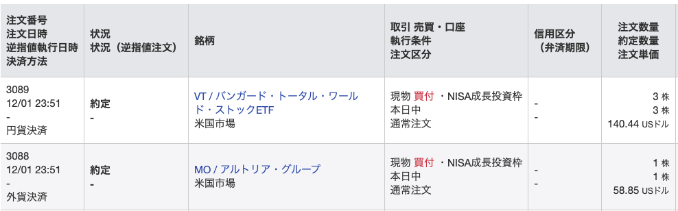 う〜ん細かい!配当金の再投資でアルトリアを1株とオルカンを5950円分購入。そして昨日株価が下がっていたのを見てVTを3株ほど購入。今、住宅購入と新NISAで利用するために楽天VTIを260万円分くらい現金化していて今年のNISA枠が60万円ほど余っているので今月中に埋めないといけないです。