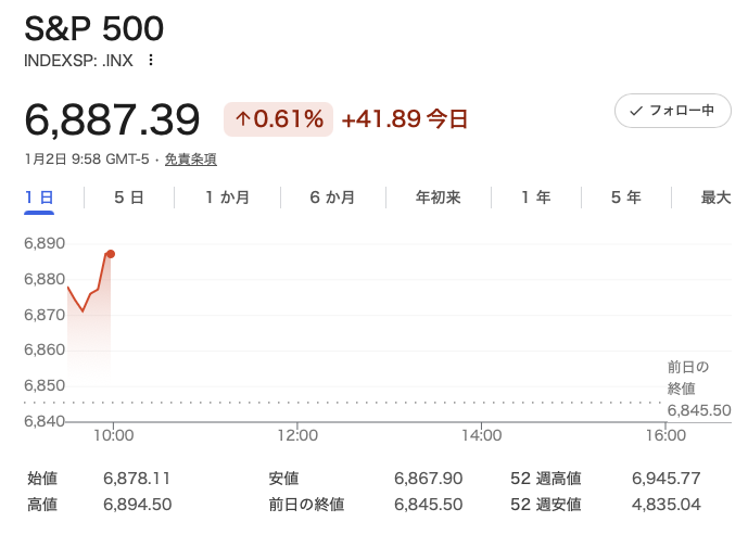 今日は株価上がっていますが、急に下げてきているので結局どっちに行くのかよくわからないですね。年明けのオープンはAI投資再来みたいな値動きでしたが、まだ警戒は続きそうなのかな。AIで利益を出している企業は一部だと思うのでしっかりお金を稼いでいる会社に再投資したいところ。というかオルカンでよくないか?と毎回思ってしまうのですが。