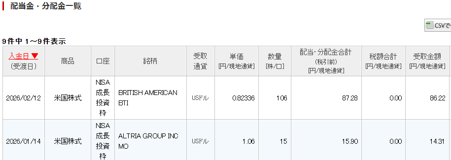 今日は配当金が振り込まれましたが1.3万円程度入っていましたね。年初にアルトリアからも2200円くらい振り込まれていたので四半期で1.5万円くらいの入金です。タバコが年間6万円くらい配当金を払い出してくれる状況になりました。